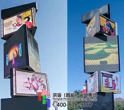 例如,近期洪海在給天津河西區一個客戶安裝的LED數字旋轉魔方柱。